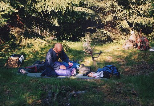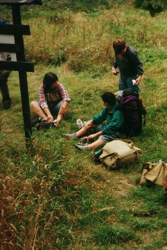 odpočíváme kousek pod Rabštejnem po přebrodění Střely.