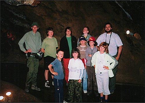 15.-17. září jsme na dvojdeňáku ven navštívili Zbrašovské arogonitové jeskyně, Hranickou propast a hrad Helfštýn. Zde fotografie z jeskyně, zadní řada zleva: Myšinka, Martin L., Honza, Jáchym, Hroch. Přední řada: Martin E., Lucka, Alakudóza, Anežka a Eliška. Bizon fotí. |