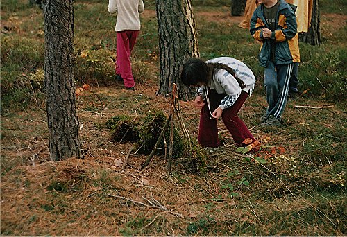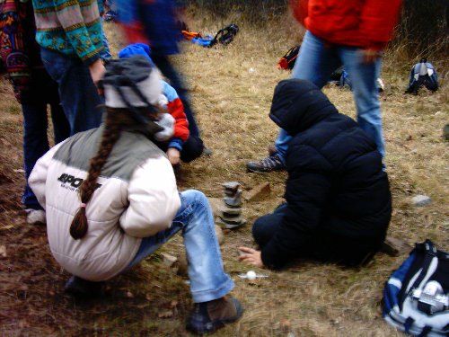 Na Brdech 13. ledna jsme se zabývali pověstmi z oblasti hřebenů. Záběr na obrázku pochází ze závěrečného závodu z etapy se stavbou věže z kamenů. |