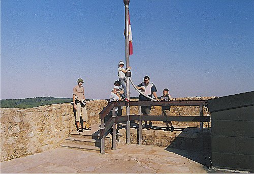 Martin uspořádal dvojdeňák ven 8.-10. června na hrad Landštejn. Účastníků bylo až kupodivu málo. Zleva Myšinka, Robert, Martin, Lucka, Hroch, Martin, Bizon fotí. |