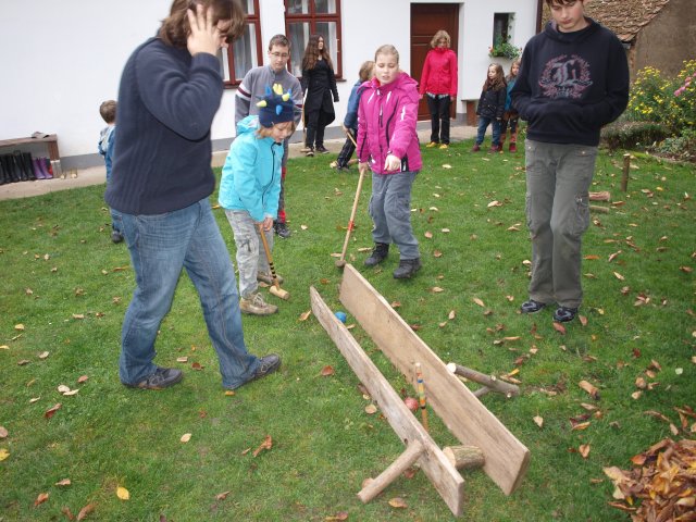 20. dubna jsme v sporném počasí navštívili Přerov nad Labem, zejména tamní skanzen. Zde na břehu Labe probíhá lístečková hra. |