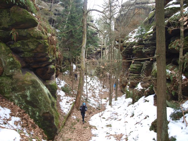 1.-3. března jsme se vypravili do okolí České Lípy, zde jsme v pískovcovém údolí Peklo v boční soutěsce označené za soutěsku Zajatců |