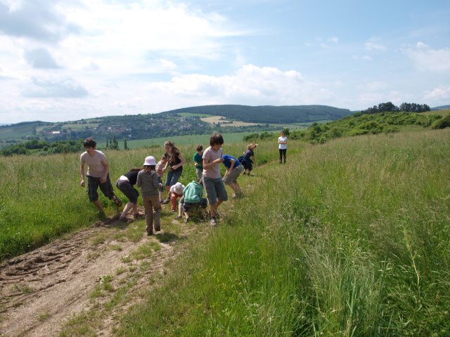 členové. Protože jsme neměli mapu, zpočátku jsme se orientovali jen podle v dálci viděného zámku. |