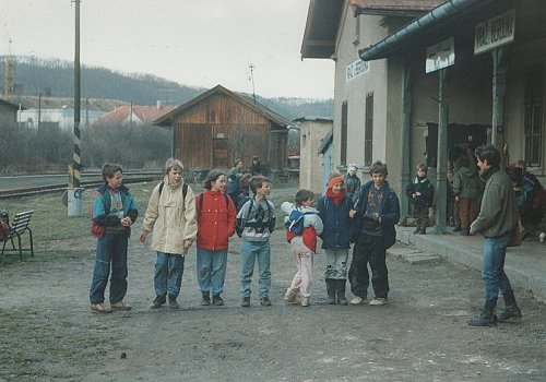 | KOnec výletu byl na nádraží ve Vráži, tam jsme měli mírný konflikt s alkoholem posíleným zákazníkem hospody Na Krétě, který se naštěstí odehrál jen v rovině slovní. Fotografie pochází z hry pro volné chvíle organizované Lukášem. | |
