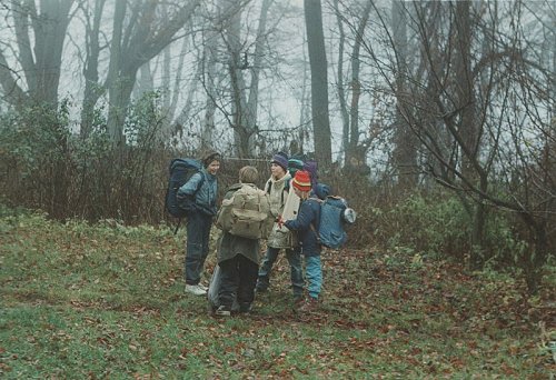 | Cílem výletu, který vedl 25.-27.11. 1994 do Neustupova bylo zjistit, jak se Prometheovi podařilo ukrást oheň a při tom splnit Imhotepův úkol naučit se rozdělávat oheň. Kromě čtyř dětí se jej zúčastnili i Lukáš s Bizonem. | |