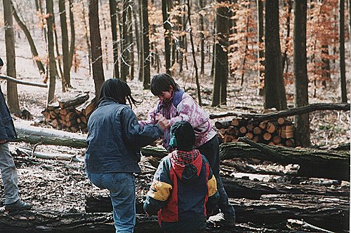 | Cílem výletu na Zbraslav 12. října 1996 bylo sehnat materiál na stavbu lodi. | |