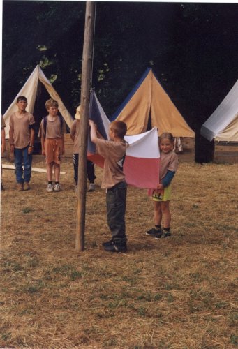 Každý den potkají tábor nástupy. Na tomto večerním nástupu je v hlavní čestné roli Ivanka s Jáchymem. |