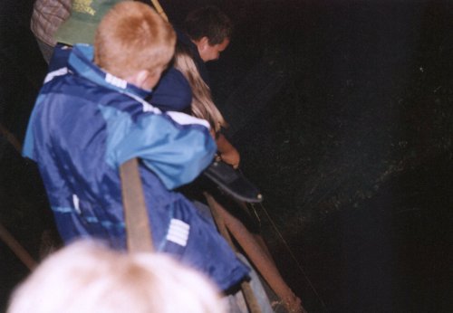 Na závěr první části tábora jsme podnikli pátrání po naloupených věcech banditů. Na snímku je právě z vody taháno cosi, co mohl být poklad, ale ve skutečnosti byla zpráva, jak pokračovat dále. |