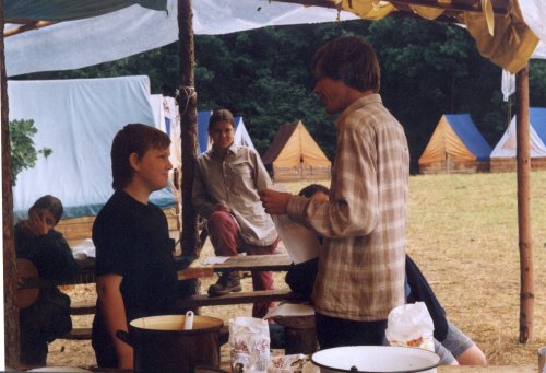 Myšinka již na Velikonocích uvedl sběratelskou karetní hru Strana Zákona kontra Žoldáci, na táboře pak pro některé uvedl její složitější verzi, kterou právě hraje a Martinem za Mirkova přihlížení. |