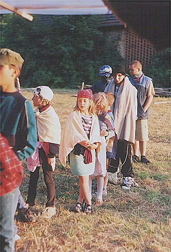 Každoroční tradicí jsou divadelní představení. Letos bohužel nebylo možné použít amfiteátr a tak jsme jeviště vybudovali na táborovém náměstí. Na snímku jedno z představení na téma Červená Karkulka hrané Orkovou skupinou, které letos získalo většinu cen. |