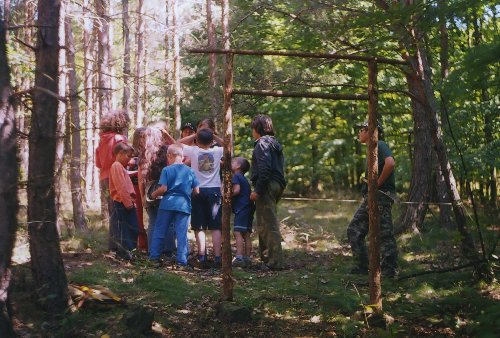 Podobně jako tématické programy, patří k táboru i kroužky, zde Vitamín při kroužku odlévání stop. |