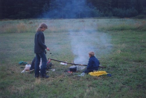 Ani letos nás neminuly manévry nebo něco podobného. Tentokrát byly zjednodušené až pod kritickou mez, zato však celou dobu chodily po Sedmihoří skupinky dětí s jediným vedoucím. Jedním z úkolů bylo i vaření večeře, tady můžete sledovat, jak se s vařením potýká třetí skupinka ve složení Bizon, Kapybara, Robert a Míša. |