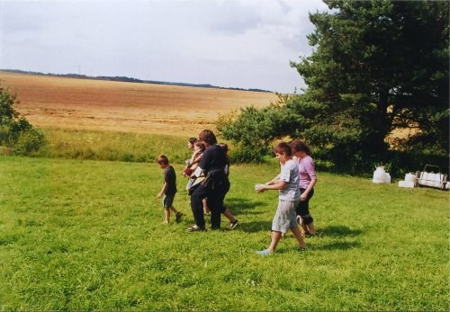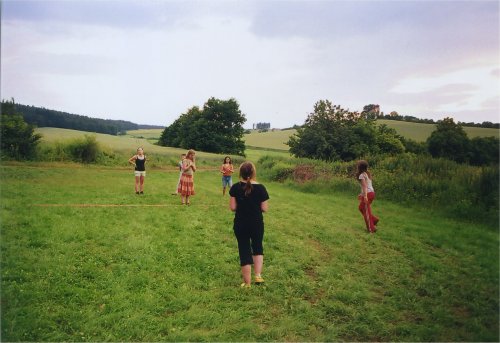 Jedna z klasických táborových činností, hry na louce, tyhle byly vedené Kapybarou. |