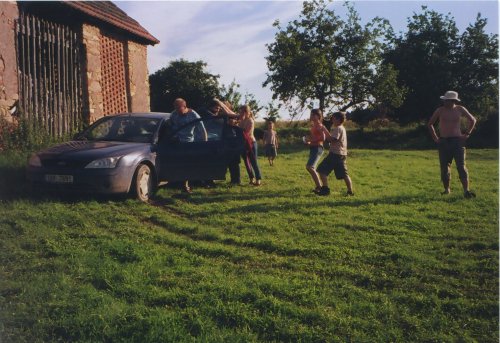 A tím jsme se přesunuli k samému závěru. Zatřený doktor Thruttleworth je cpán do auta a odvážen na policii. Ve skutečnosti mám fotografie i z událostí mezi samostatným vařením a závěrečnou hrou, ale ty byly na začátku třetího filmu, který nebyl v době scanování ještě vyvolán takže tato a další fotografie pocházejí z Hančiny Konicy. |