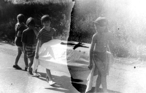 Jedna z akcí, jeden z úkolů. Doneste rakev z krchleb do Poděvous. myslím, že to byla jedna z pěkných šíleností, které jsme v oddíle porůznu dělali. |